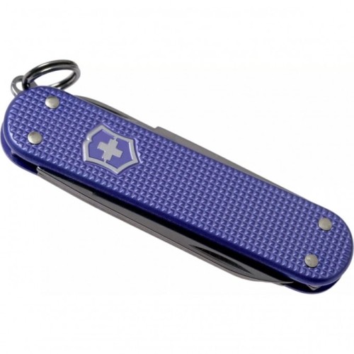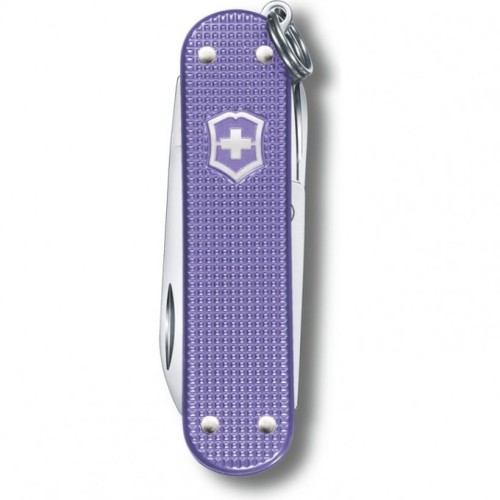 Нож-брелок Victorinox Classic SD ALOX Colors, Electric Lavender (0.6221.223G) с алюминиевыми накладками рукояти, 5 функций, 58 мм. в сложенном виде, цвет фиолетовый.