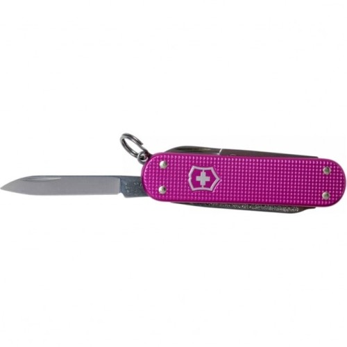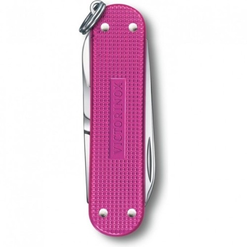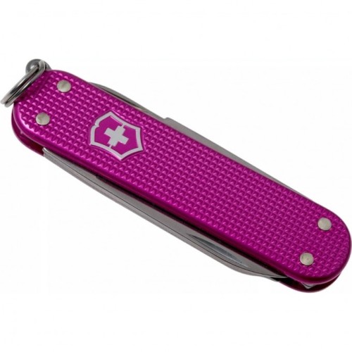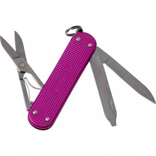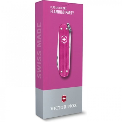 Нож-брелок Victorinox Classic SD ALOX Colors, Flamingo Party (0.6221.251G) с алюминиевыми накладками рукояти, 5 функций, 58 мм. в сложенном виде, цвет пурпурный.