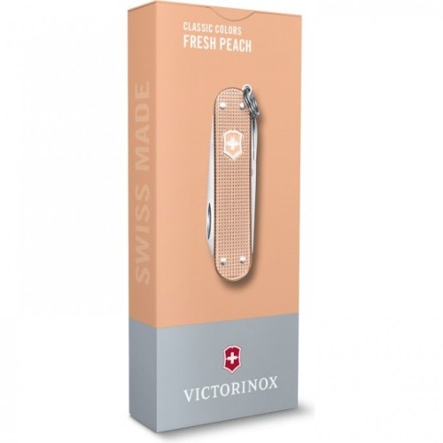 Нож-брелок Victorinox Classic SD ALOX Colors, Fresh Peach (0.6221.202G) с алюминиевыми накладками рукояти, 5 функций, 58 мм. в сложенном виде, цвет персиковый.