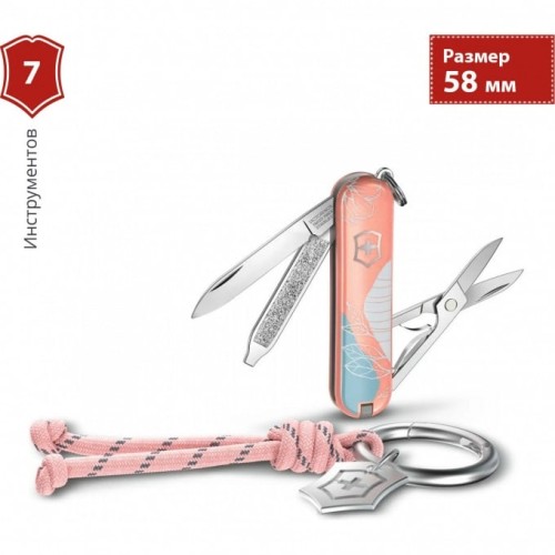 Нож перочинный Victorinox Classic SD Paris Style (0.6223.E221) 58мм 7функц. подар.коробкаVictorinox CLASSIC SD Paris Style – крошечный швейцарский карманный нож 58 мм на 7 функций из коллекции Live to Explore - «Живи, чтобы исследовать». Victorinox считает, что функциональность и женственность идут рука об руку. Парижский стиль романтичен и естественен, переносит прямо в город любви. Он предлагает игривость, мягкие цвета и легкую сладость. Paris Style олицетворяет романтику, излучает женственность и естественную грацию. Создан для женщины, которая позволяет своему сердцу указывать путь, а голове принимать решения. Его игривый внешний вид выполнен в нежной розово-серой палитре, украшен милым брелочком с подвеской-логотипом бренда. Сочетает незаменимый набор инструментов и высочайшее качество. Положите Classic SD Paris Style в сумочку или карман и наполните свою повседневную жизнь нежностью и силой.