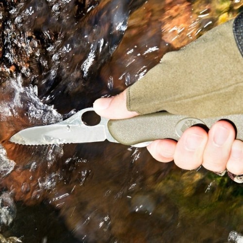 - Большое лезвие с возможностью открытия одной рукой и серейторной заточкой на 2/3