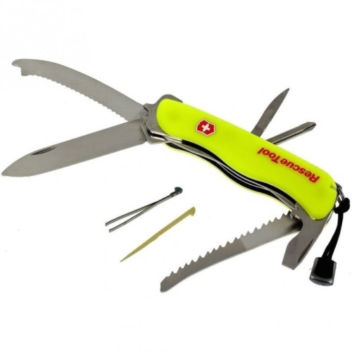 Швейцарский складной нож Victorinox 0.8623.N Rescue Tool длиной 111 мм и желтого цвета – это нож разработанный совместно медицинскими и спасательными службами. Он по праву может считаться одним из наиболее продуманных для чрезвычайных ситуаций.