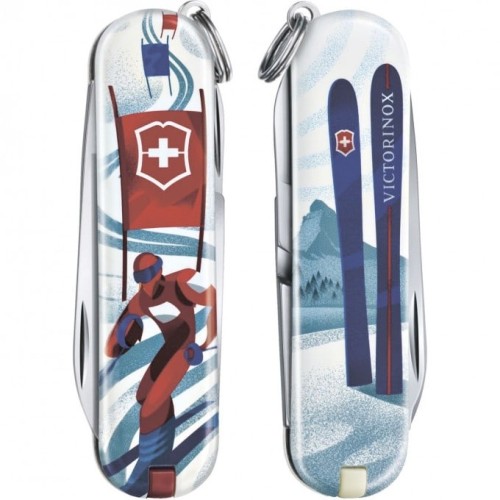 Швейцарский нож-брелок Victorinox 0.6223.L2008 Classic Ski Race длиной 58 мм и с разноцветной рукояткой – это настоящий символ непревзойденного качества, стильный аксессуар и прекрасный помощник в самых разных ситуациях.