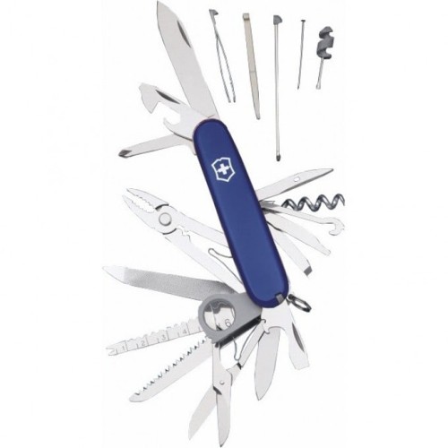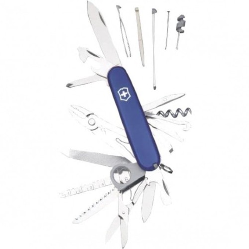 Нож перочинный VICTORINOX Swiss Champ, 91 мм, 33 функции, лезвие и инструменты из нержавеющей стали, рукоять из синего пластика.