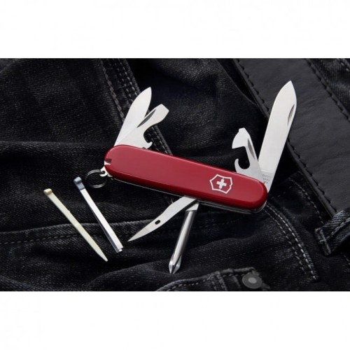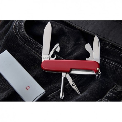 Швейцарский складной нож Victorinox Small 0.4603 Tinker длиной 84 мм и красного цвета – это особая модель ножа, которая приятно удивит всех, кто любит путешествия, выезды на природу и просто ценит возможность пользоваться добротной и элегантной вещью. Гарантированное качество и максимальная степень удобства использования лучшим образом характеризуют нож модели артикул.