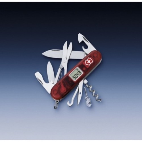 Швейцарский складной нож Victorinox 1.3705.AVT Traveller с часами длиной 91 мм и с полупрозрачной красной рукояткой предназначен для туристических экспедиций, он поможет выполнить ряд задач самого разного направления. Характеристики и возможности ножа гарантируются известным во всем мире швейцарским производителем. И символ качества в виде белого креста на красном щите с первого взгляда помогает понять ценность выбранной модели.