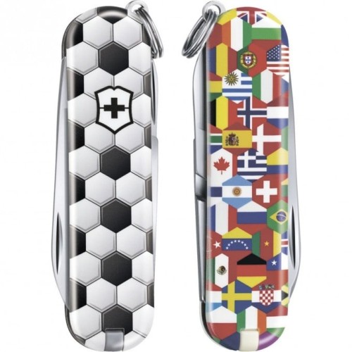 Швейцарский нож-брелок Victorinox 0.6223.L2007 Classic World Of Soccer длиной 58 мм и с разноцветной рукояткой – это настоящий символ непревзойденного качества, стильный аксессуар и прекрасный помощник в самых разных ситуациях.