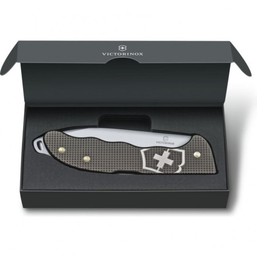 Сбалансированный, мощный и надёжный – такие эпитеты в равной степени присущи этому стильном ножу из нашей 8-й коллекции Alox Limited Edition 2022. Вдохновленный энергией шторма, нож Hunter Pro излучает неподвластную времени изысканность. Модель представлена в загадочном и элегантном цвете Thunder Gray. Благодаря специальным сделанным в Швейцарии алюминиевым накладкам, обработанным методом тиснения и анодирования для максимальной прочности, эта коллекция Alox является самой прочной в ассортименте Victorinox.