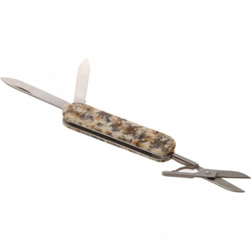 Швейцарский нож-брелок Victorinox 0.6200.58 RocKnives Baltic Brown длиной 58 мм с рукояткой из камня-гранита при скромных размерах обладает массой достоинств: удобство использования сочетается в нем с практичностью каждого инструмента, а тщательная проработка каждой детали – с изысканностью классического внешнего оформления.