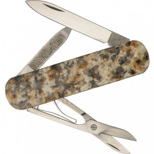 Швейцарский нож-брелок Victorinox 0.6500.58 RocKnives Baltic Brown длиной 58 мм с рукояткой из камня-гранита при скромных размерах обладает массой достоинств: удобство использования сочетается в нем с практичностью каждого инструмента, а тщательная проработка каждой детали – с изысканностью классического внешнего оформления.