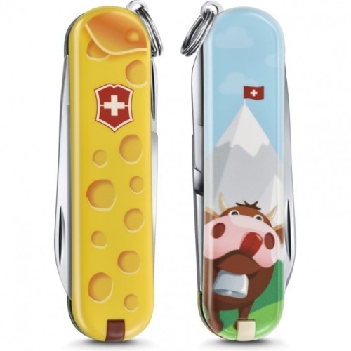 Швейцарский нож-брелок Victorinox 0.6223.L1902 Classic Alps Cheese длиной 58 мм и с разноцветной рукояткой – это настоящий символ непревзойденного качества, стильный аксессуар и прекрасный помощник в самых разных ситуациях.