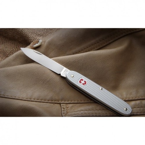 Швейцарский складной нож Victorinox Solo Alox 0.8000.26 Pioneer 93 мм, серебристого цвета – это нож имеющий компактные размеры в сочетании с уникальными характеристиками обеспечивающими наибольшее удобство использования. У ножа стандартная толщина лезвия, что придает особую солидность и выразительность.