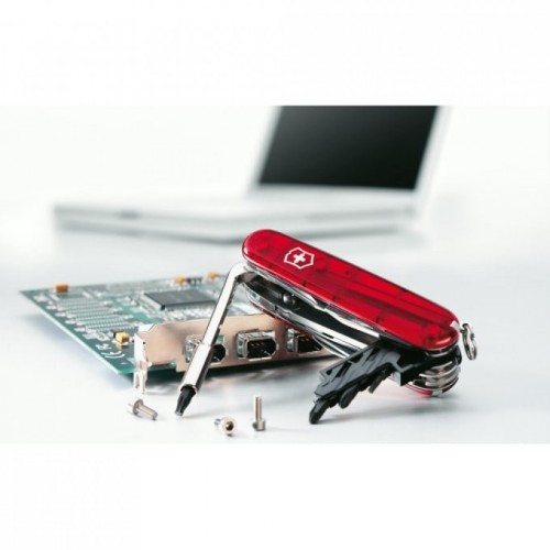 Швейцарский многопредметный нож Victorinox 1.7925.T Cyber Tool Lite длиной 91 мм с прозрачной красной рукояткой дает уникальную возможность назвать его специализированным инструментом для компьютерных гениев. Внутри компактного ножа находится комплекс совершенных приспособлений для выполнения самых разных функций. Размеры ножа позволяют всегда иметь его под рукой: нож легко помещается в карман и даже в дамскую сумочку.
