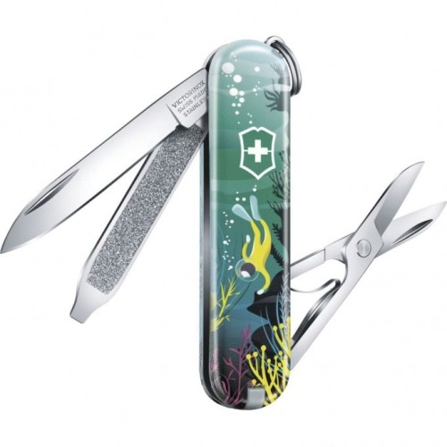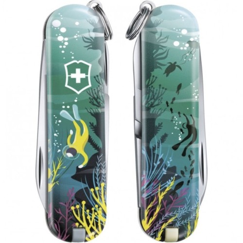 Швейцарский нож-брелок Victorinox 0.6223.L2006 Classic Deep Dive длиной 58 мм и с разноцветной рукояткой – это настоящий символ непревзойденного качества, стильный аксессуар и прекрасный помощник в самых разных ситуациях.