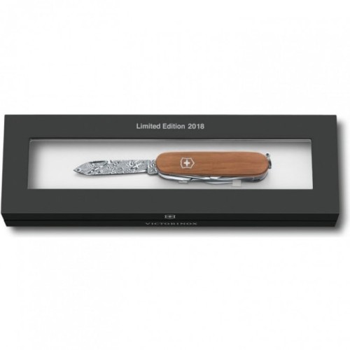 Новинка произведена ограниченным тиражом в 6000 штук, каждое изделие имеет порядковый номер, который выгравирован на разделителе за крестовой отвёрткой. Новые уникальные накладки из сливового дерева и впечатляющее элегантное лезвие из Дамасской стали привлекают взгляд. Фирменный логотип нанесён на фронтальную рукоять методом инкрустации металла. Модель Deluxe Tinker Damast Limited Edition 2018 – это эксклюзивный нож, который не оставит равнодушным, как коллекционеров, так и обычных пользователей.