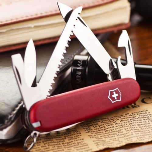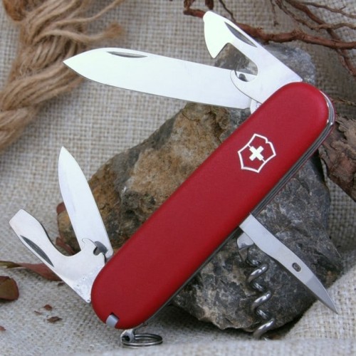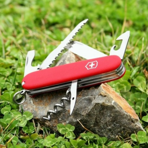 1. Большое лезвие 2. Малое лезвие 3. Штопор 4. Консервный нож с 5. Малой отверткой 6. Открывалка для бутылок с: 7. Отверткой 8. Инструментом для снятия изоляции 9. Шило, кернер 10. Кольцо для ключей 11. Пинцет 12. Зубочистка 13. Пила по дереву