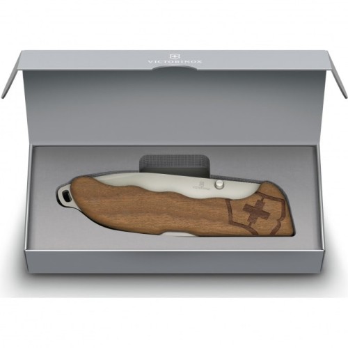Victorinox Evoke Wood - обновлённая версия легендарной модели Victorinox Hunter Pro. В отличие от предшественника лезвие ножа EVOKE имеет съёмный шпенёк для удобного открывания одной рукой.