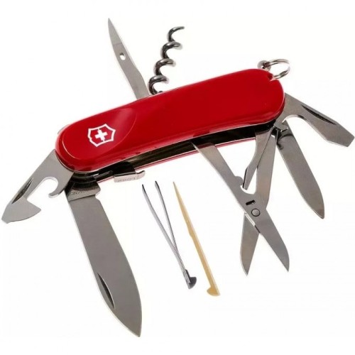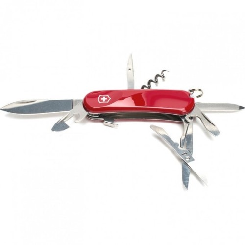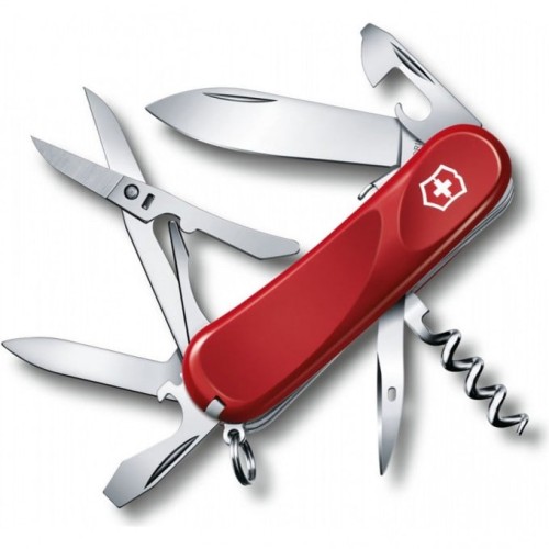 Нож перочинный VICTORINOX Evolution S14, 85 мм, 14 функций, фиксатор лезвия "spring lock", лезвие и инструменты из нержавеющей стали, рукоять из красного пластика.
