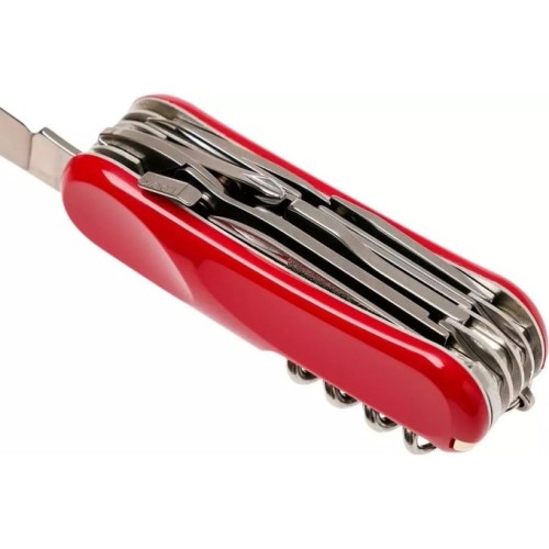 Наличие множества видов лезвий и дополнительных приспособлений позволяет использовать нож в самых разных ситуациях. Размер модели швейцарского ножа 2.5223.SE обеспечивает удобство при транспортировке в кармане и на общей связке ключей. Долговременная заточка и исключительная надежность всех механизмов – всемирно известные качества, сделавшие нож незаменимой частью солдатского обмундирования в большинстве стран мира.