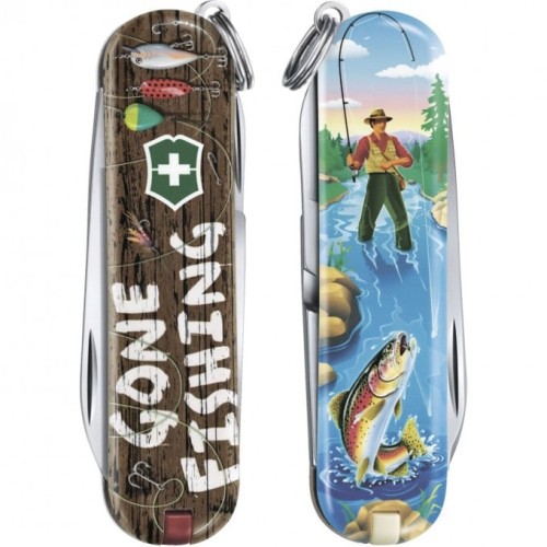Швейцарский нож-брелок Victorinox 0.6223.L2005 Classic Gone Fishing длиной 58 мм и с разноцветной рукояткой – это настоящий символ непревзойденного качества, стильный аксессуар и прекрасный помощник в самых разных ситуациях.