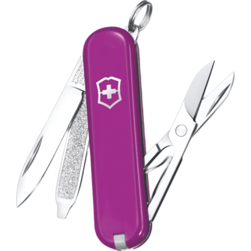 Швейцарский нож-брелок Victorinox Classic SD Tasty Grape Элегантные и практичные миниатюрные ножи Victorinox Classic SD удобно использовать в качестве брелока для ключей. Ножи-брелоки Victorinox Classic снабжены острым лезвием, ножницами, маникюрной пилкой с плоской отвёрткой, пинцетом и зубочисткой. Являются прекрасным аксессуаром как для мужчин, так и для женщин.