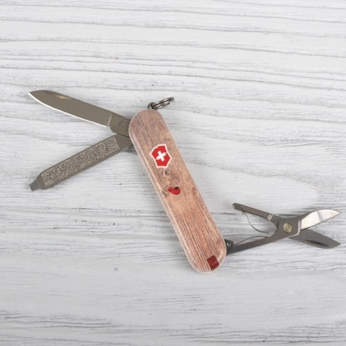 Швейцарский нож-брелок Victorinox 0.6223.L1706 Classic Woodworm длиной 58 мм и с деревянной рукояткой – это настоящий символ непревзойденного качества, стильный аксессуар и прекрасный помощник в самых разных ситуациях.