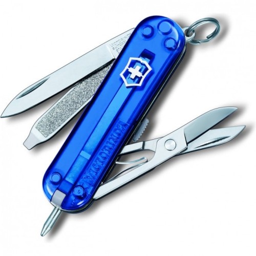 Швейцарский складной нож-брелок Victorinox 0.6225.T2 Signature Blue Trans длиной 58 мм с синей рукояткой при своих компактных размерах способен удивить высокой степенью функциональности и вместить внутри себя много инструментов. Нож решит многие бытовые проблем и пребывание на природе особенно комфортным.
