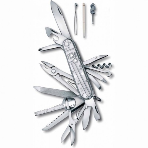 Швейцарский перочинный нож Victorinox 1.6794.T7 SwissChamp SilverTech длиной 91 мм и с прозрачной серой рукояткой можно использовать в самых разных ситуациях – в городе, в быту, на природе. Везде он поможет выполнить ряд бытовых задач и обеспечит комфортное существование.