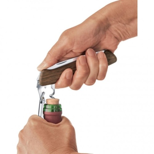 Откупоривание бутылки вина это особый процесс! С моделью Wine Master устроить праздник можно где угодно. Ценители вина, любители отдыха на природе и коллекционеры по достоинству отметят высокое качество и точность нового многофункционального инструмента. Экстра-длинный штопор с пятью катушками предотвращает разрыв пробки во время её извлечения из бутылки. Нож оснащён универсальным инструментом с двухступенчатым рычагом для откупоривания, а также открывалкой для бутылок.