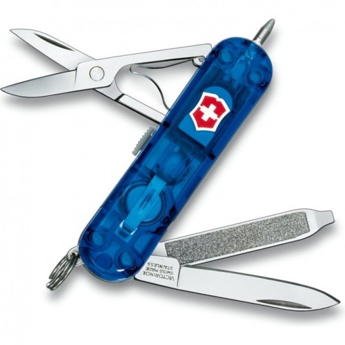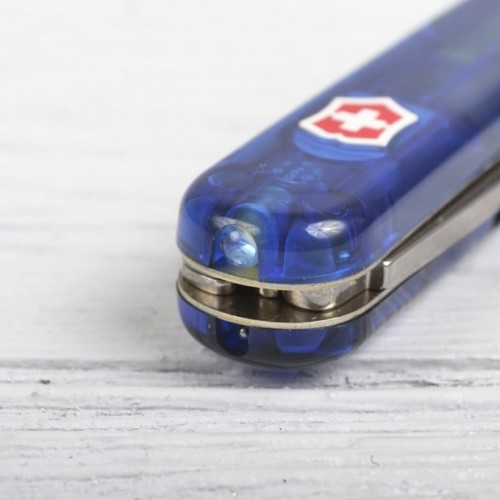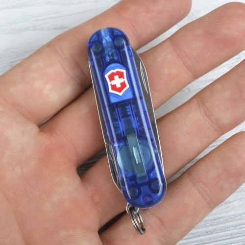 Швейцарский складной нож-брелок Victorinox 0.6226.T2 Signature Lite длиной 58 мм с прозрачной синей рукояткой при своих компактных размерах способен удивить высокой степенью ункциональности и вместить внутри себя много инструментов. Нож решит многие бытовые проблем и пребывание на природе особенно комфортным.