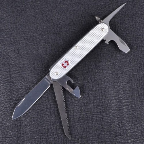 Швейцарский складной нож Victorinox Farmer Alox 0.8241.26 Pioneer 93 мм, серебристого цвета – это нож имеющий компактные размеры в сочетании с уникальными характеристиками обеспечивающими наибольшее удобство использования. У ножа стандартная толщина лезвия, что придает особую солидность и выразительность.