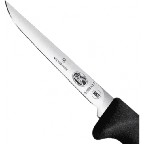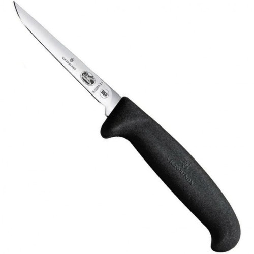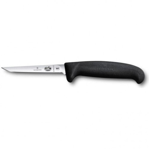 Нож кухонный Victorinox Fibrox (5.5903.11) стальной разделочный для птицы лезв.110мм прямая заточка черный Victorinox Poultry - специализированный нож от легендарного швейцарского бренда, предназначенный для разделки птицы и мелкой дичи. Прочное лезвие изготовлено из высококачественной нержавеющей стали. Лазерная заточка гарантирует длительное сохранение режущих свойств. Эргономичная рукоять ножа из ударопрочного пластика fibrox с нескользящей поверхностью обеспечивает надёжный хват.