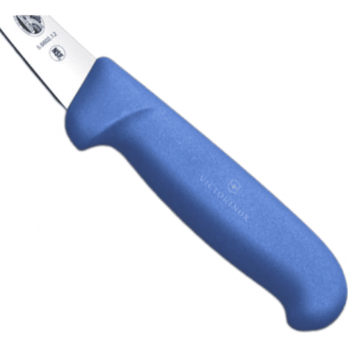 Нож кухонный Victorinox Fibrox стальной разделочный для мяса, лезвие 150 mm прямая заточка, синий