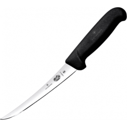Нож кухонный Victorinox Fibrox стальной разделочный для мяса, лезвие 120 mm прямая заточка, черный