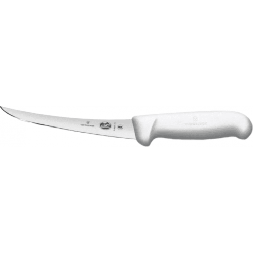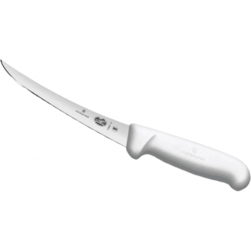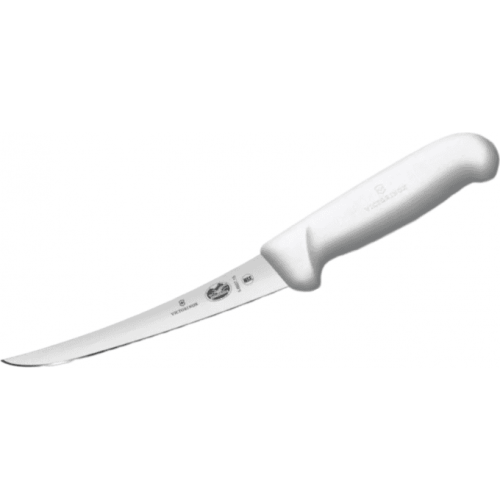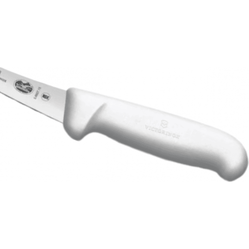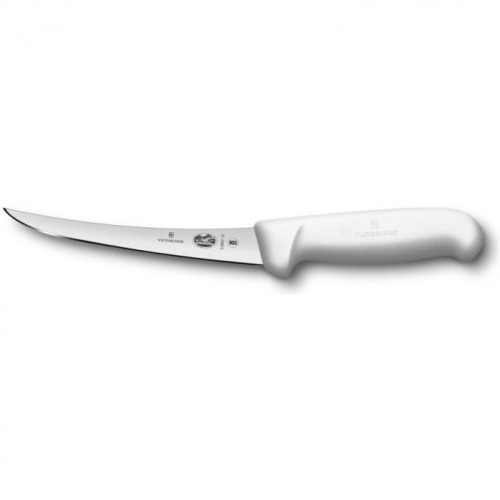 Нож кухонный Victorinox Fibrox, стальной, разделочный. лезвие 150мм. прямая заточка, белый.