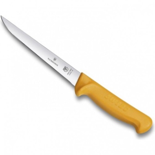 Швейцарский кухонный жиловочный нож Victorinox 5.8421.14 длиной 14 см и с пластиковой рукояткой желтого цвета сделает процесс приготовления мясных блюд особенно приятным. Благодаря ему разделка мясных туш, нарезание мяса на порционные кусочки нужного размера и удаление пленок и жил из мяса выполняется особенно легко и быстро.