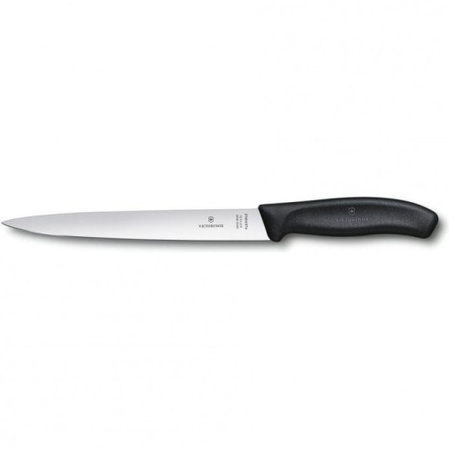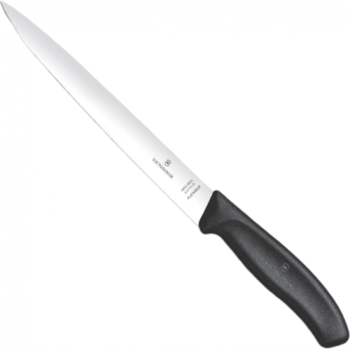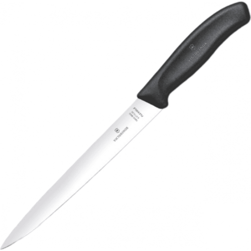 Швейцарский филейный кухонный нож Victorinox 6.8713.20G длиной 20 см с пластиковой ручкой черного цвета приятно удивит даже профессионального повара, ведь он обладает рядом преимуществ перед аналогами, обладает продуманной эргономичной формой и отлично справляется задачей филетирования.
