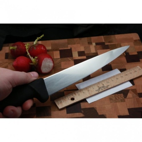 • форма лезвия универсального кухонного ножа стандартная с прямой заточкой.