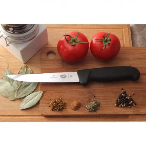 Швейцарский кухонный жиловочный нож Victorinox 5.6003.15 длиной 15 см и с пластиковой рукояткой черного цвета сделает процесс приготовления мясных блюд особенно приятным. Благодаря ему разделка мясных туш, нарезание мяса на порционные кусочки нужного размера и удаление пленок и жил из мяса выполняется особенно легко и быстро.