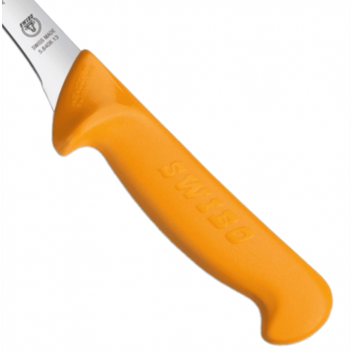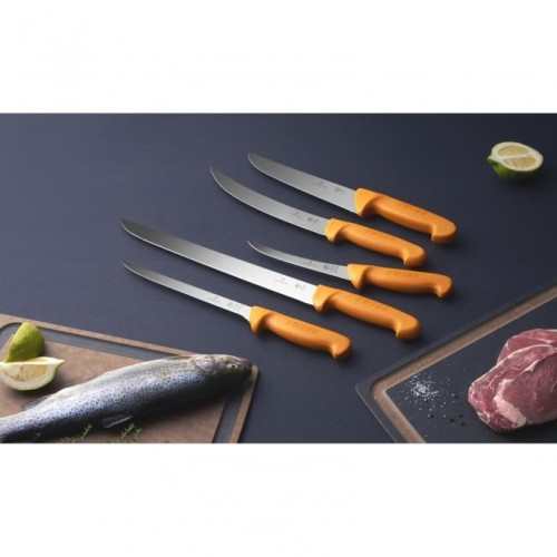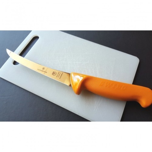 Обваловочные ножи Victorinox Swibo пользуются особым спросом у шеф-поваров, мясников и рыбаков во всем мире по причине их незыблемого качества. Некоторые знатоки своего дела предпочитают использовать для приготовления филе именно обваловочный нож, поскольку его тонкое лезвие отличается несколько меньшей гибкостью, чем у ряда ножей для филетирования. Фирменная яркая рукоять ножей Swibo изготовлена методом литья под давлением и плотно охватывает полированное лезвие из высококачественной нержавеющей стали. Удобная в обращении, нескользящая рукоять без микропор или трещин из соображений санитарии и стерильности.