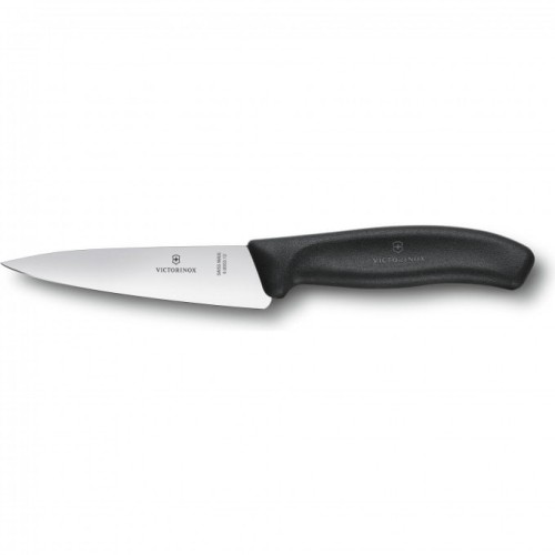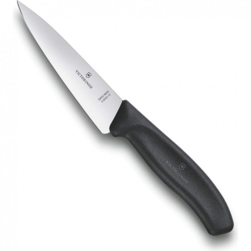 Швейцарский универсальный кухонный нож Victorinox 6.8003.12B длиной 12 см и с пластиковой рукояткой черного цвета пользуется популярностью как профессиональных кулинаров, так и любителей готовить на домашней кухне. В данной модели ножа сосредоточены множественные достоинства конструкции, грамотно подобранны размеры каждой части.