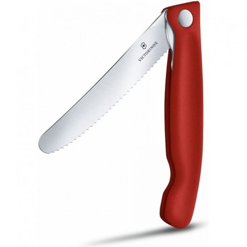 Нож для овощей VICTORINOX SwissClassic, складной, лезвие из нержавеющей стали 11 см с волнистой заточкой, красная рукоять из полипропилена, в блистере.