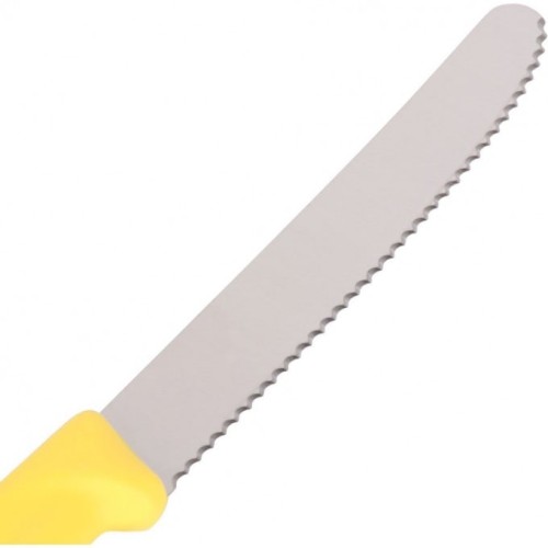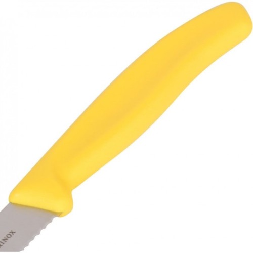 Кухонные ножи из набора Victorinox 6.7836.L118B изготовлены из высококачественной нержавеющей стали, долгое время остаются острыми и не подвержены коррозии. Эргономичные пластиковые рукоятки ножей желтого цвета предотвращают скольжение и случайные травмы во время приготовления пищи, также они удобно лежат в ладони, легко моются и не впитывают пищевые запахи.