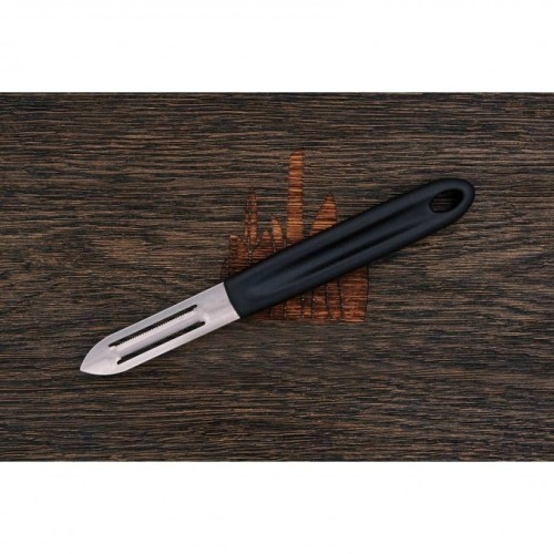 Новая серия универсальных овощечисток 7.6077 с цветными рукоятями от компании Victorinox. С этой серией удовольствие от работы по приготовлению продуктов увеличивается ещё больше. Лезвие на овощечистке обладает двусторонней заточкой (для правшей и левшей ) и закреплено неподвижно. Кончик имеет заострение для удаления глазков на картофеле.