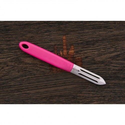 Лезвие на овощечистке обладает двусторонней заточкой (для правшей и левшей ) и закреплено неподвижно.