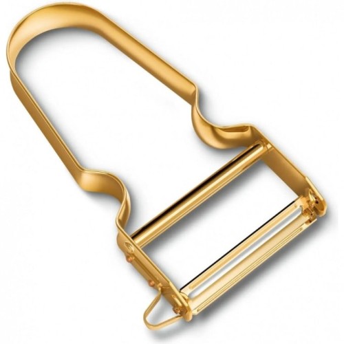 Ручка изготовлена из алюминия с отделкой золотом, а ультраострое гладкое лезвие из высококачественной нержавеющей стали. Это незаменимая вещь как для профессиональных поваров, так и для любителей. Поскольку конструкция овощечистки позволяет резать близко к кожуре фрукта или овоща, то сохраняются присущие продукту витамины. С 1947 года культовая овощечистка REX помогает домашним поварам быстро и безопасно работать на кухне.