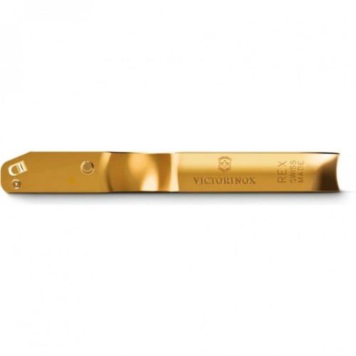 Лимитированная овощечистка REX Golden от Victorinox (24-каратное золотое покрытие) - это эффектный и эффективный кухонный инструмент, который позволяет легко чистить все виды фруктов и овощей. Он также подходит для резки шоколада и сыра.