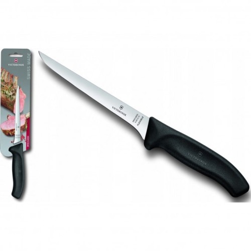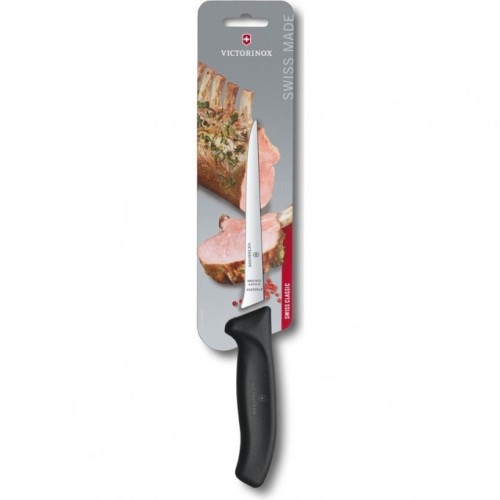 Разделка мяса предполагает использование предназначенного именно для такой работы кухонного филейника. Кухонный нож Victorinox 6.8413.15B широко применяется и рыбаками: конструкция ножа позволяет легко разделывать рыбу, а также птицу.