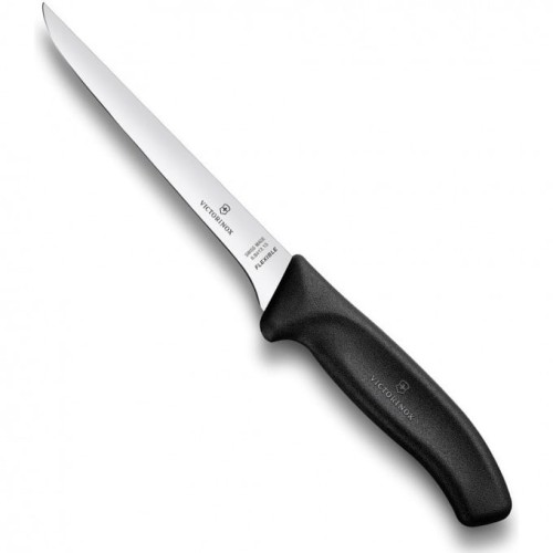 Швейцарский филейный кухонный нож Victorinox 6.8413.15B длиной 15 см с пластиковой ручкой черного цвета приятно удивит даже профессионального повара, ведь он обладает рядом преимуществ перед аналогами, обладает продуманной эргономичной формой и отлично справляется задачей филетирования.