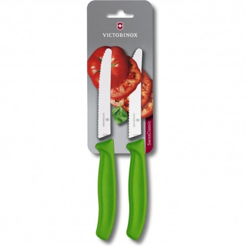 Новинка от швейцарских мастеров - кухонный нож Victorinox SwissClassic Tomato&Table Set 6.7836.L114B. В комплектацию входят 2 одинаковых ножа, разработанных для удобной нарезки и очистки овощей, а также фруктов, колбасы. Прекрасно справятся с ролью столового прибора.